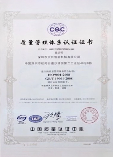質量管理體系認證證書