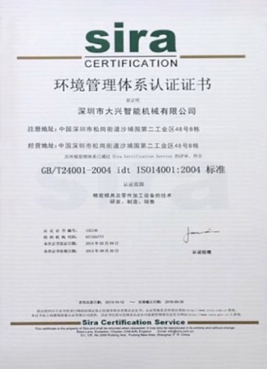 環(huán)境管理體系認證證書