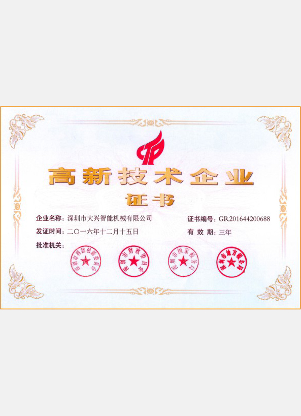 高新技術企業(yè)證書